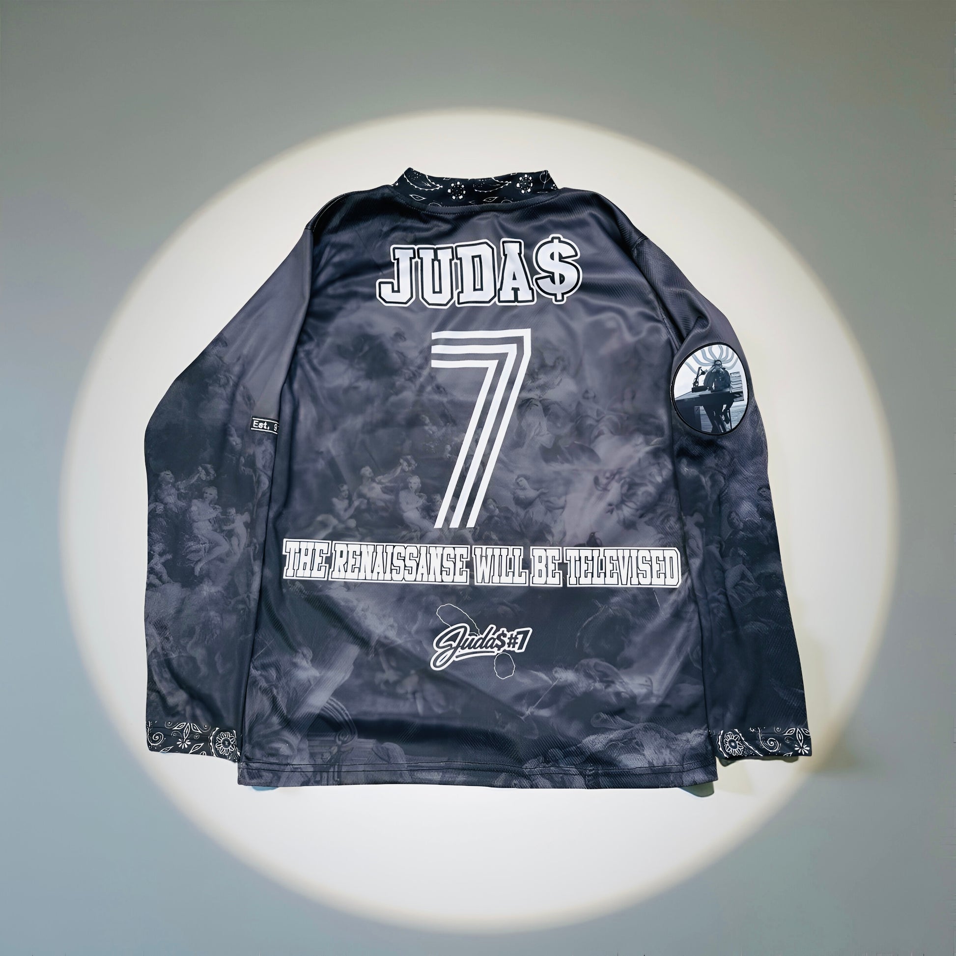 Back Detailing — Revolutionary nameplate, iconic #7, and “The Renaissance Will Be Televised”